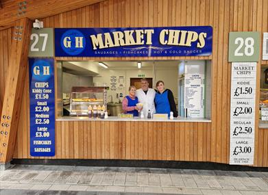 G & H Market Chips serves traditional Yarmouth chips and toppings from their Market Place stall.