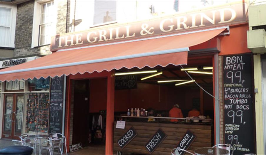Grill N Grind, Great Yarmouth, where you can stop for a hot/cold drink and a hot snack. From hot dogs and burgers to bacon rolls and capuccino/latte/espresso. Everything at a bargain price of 99p.