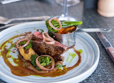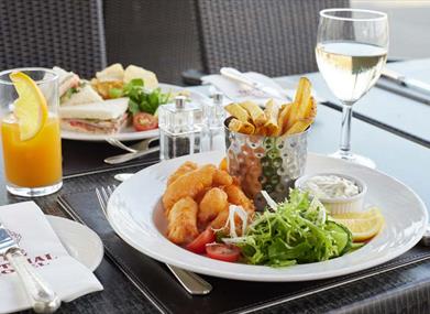 We serve breakfast, lunch, snacks, afternoon tea and dinner, with starters, mains and pudding on the menu, and a special children's menu too. Alternatively you can call in for a coffee or tea, a glass of wine or beer and simply sit back, relax and enjoy the view.
