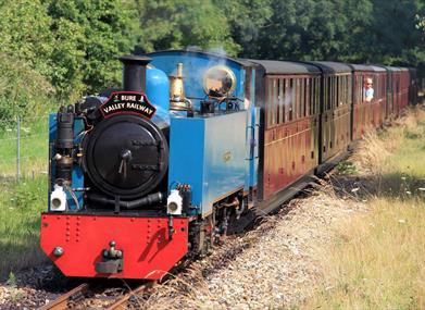 Bure Valley Railway is Norfolk's longest narrow gauge steam railway and runs between the market town of Aylsham and the bustling Broads town of Wroxham, and is within easy reach of Norwich and the coast. The nine mile line runs through the picturesque Bure Valley countryside, with a combined train and cruise on the Norfolk Broads available.