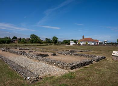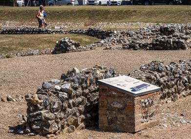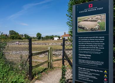 Caister Fort: Partial excavated remains of a Roman 'Saxon Shore' fort, including wall and ditch sections and building foundations. Built around AD 200 for a unit of the Roman army and navy and occupied until the end of the 4th century.