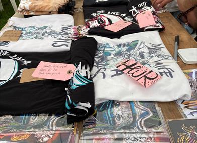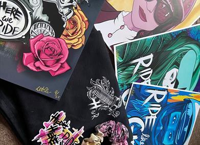 Here We Ride creates artwork, clothing and accessories for women riders based on real bikers. She will be creating prints, T-shirts, original artworks, jewellery, dresses and commissions for the show.