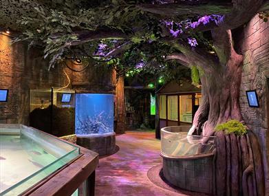 Come face to fin with our rapidly growing juvenile blacktip reef sharks in the 250,000 litre Tropical Ocean Display & Tunnel where you can also see an awesome array of creatures and an inquisitive Green Sea Turtle as they roam around the Lost City of Atlantis! (Please note: our ocean display and tunnel is currently being refurbished and will be closed until 5th April 2025).