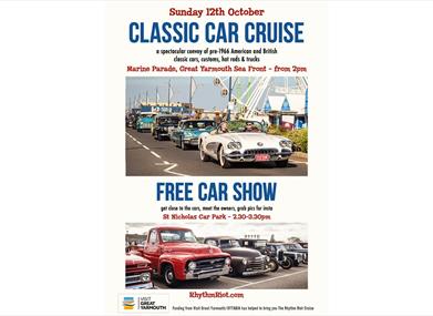 Car cruise for pre-1966 American and British classics and customs, hot rods and trucks. Scooters and motorbikes are welcome.