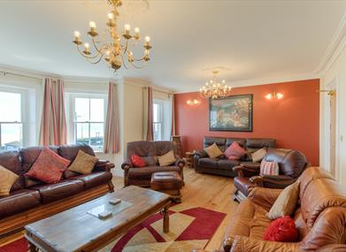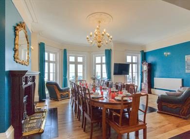 Dukes Mansion Apartment offers spacious luxury living accommodation for 10 to 12 people making it an ideal holiday for families or groups of friends sharing who are looking for a spacious, well maintained property with a high level of comfort. Newly renovated to an excellent high standard and finish with retained original period features. Beautifully presented with 5 bedrooms, plus large sofa bed, large kitchen dining room with separate lounge, 3 bathrooms and a small outside terraced area with superb views of the sea and Scroby Sands.