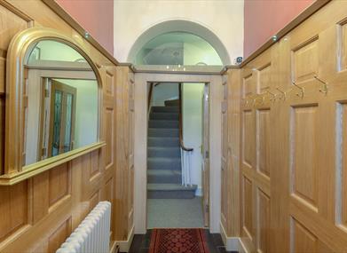 Ground Floor: Large oak panelled hallway with plenty of hooks and space for coats and shoes.