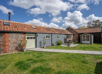 Natterjack is one of five modern barn conversions situated down a quiet loke in the centre of Winterton-on-Sea. The front door leads into an open plan living area with comfortable seating and dining for up to four guests. There's a TV, and the well equipped kitchen includes a hob, cooker, fridge/freezer, dishwasher and washer/drier. In the main bedroom there's a king size bed, and the second bedroom has two 3' single beds. In the bathroom, there's a shower over the bath, wash basin and WC. The cottage has central heating throughout. Outside there's an enclosed garden at the front of the cottage with a lawn, and patio furniture for guests. There is free wifi, and off road parking for one car, with additional on road parking nearby in the village. Up to two large or 3 small/medium dogs are welcome at Natterjack - the beach is only 5-10 minutes walk away and is dog friendly all year round